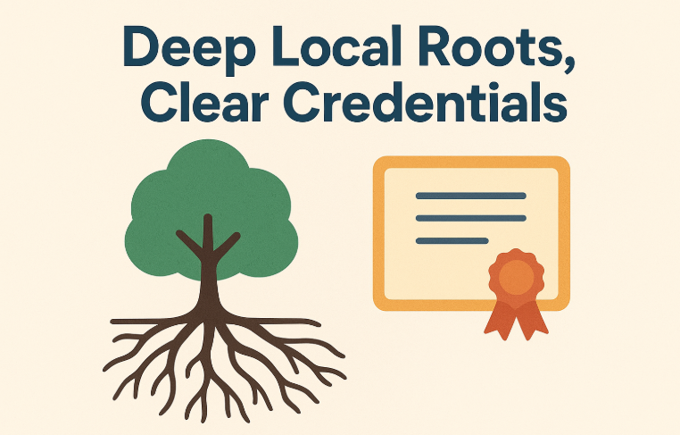 Deep local roots, clear credentials